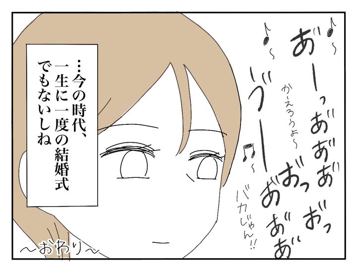 「自分で考えて返事して」と冷たく新郎を突き放しました。さらに「今どき、一生に一度の結婚式でもない」と新郎との今後について、考え始めたようです。