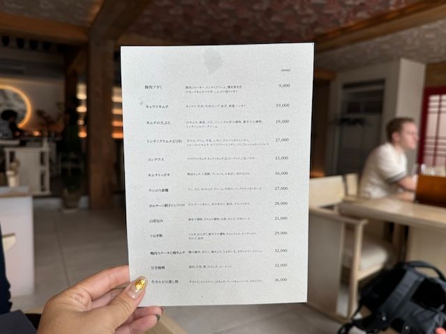 アクセスは、地下鉄3号線・安国駅から徒歩わずか2分。観光スポット・北村韓屋村や仁寺洞にも近く、散策途中に立ち寄るのにちょうどいい立地です。外観は韓屋の瓦屋根と木の格子戸が印象的ですが、中へ入ると一転、洗練されたモダンデザイン。グレーの壁にナチュラルウッドのテーブル、そしてキャンドルのような柔らかい照明。