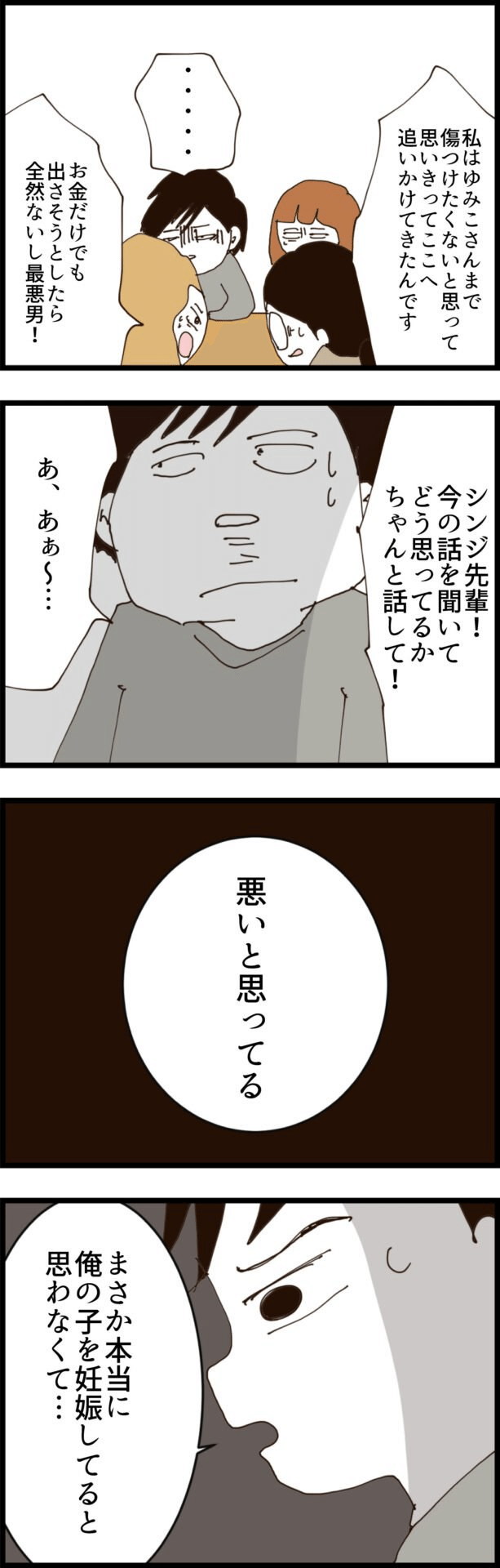 本当にまひろが自分の子を妊娠しているなんて知らなかったため「悪かった」と謝罪する夫ですが、あろうことか「無職だから何もできない」と言い訳し、責任を逃れようとするのです。