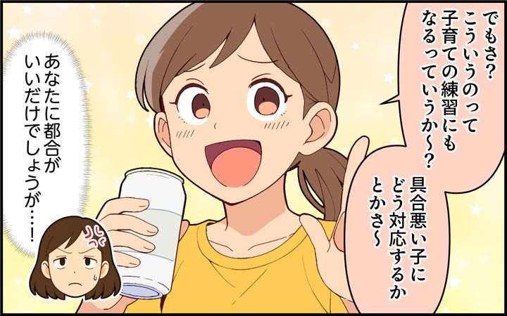 子育ての練習? 余計なお世話です。胃腸炎なのに妊婦のもとへ来襲し、妊婦をこき使い、平気でビールを飲める義姉の神経を疑います。