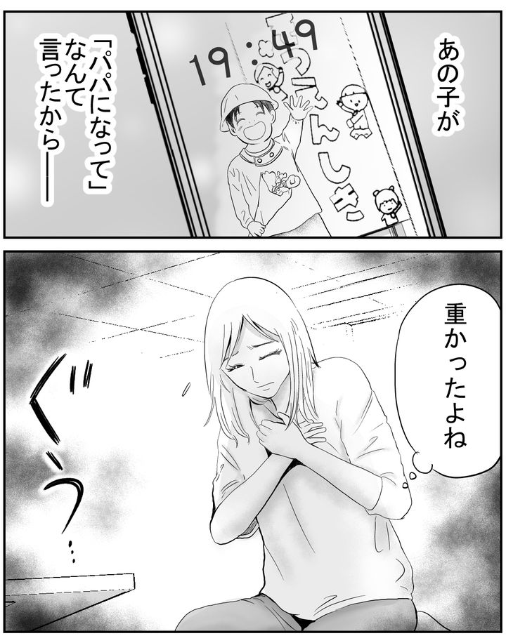 自分に自信がなく、なかなか決断できないでいたみのりだったが、とうとう無職夫と離婚が成立。いつしか中学時代の同級生の園田が心の支えになっていた。息子も園田に懐き「もうパパでよくない?」と言う。しかし園田は暴力的な父親のトラウマを抱え人と深い関係を築けない。息子に懐かれ嬉しい半面、表情は曇っていき…。