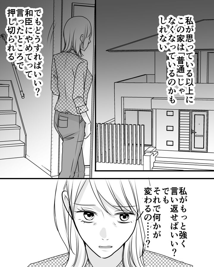 夫が正しいと信じ、夫の言う通りにしてきた真美は、中学生の娘から指摘されて初めてこの夫婦関係が「普通」じゃないことに気づいた。娘は夫に全部決められることに長い間苦しんでいたようで「お母さんは何も感じてないの?」と真美に問うのだった。娘の思いを知り、今の夫はやりすぎだと感じた真美はこのままではいけないと思うのだが…。