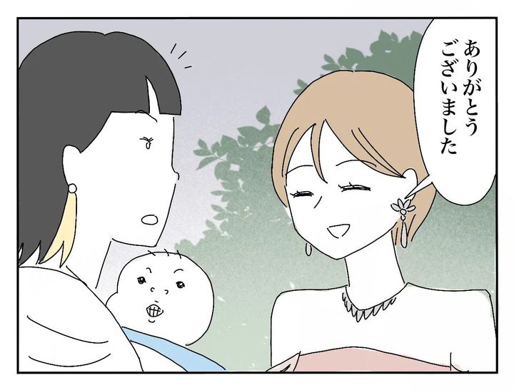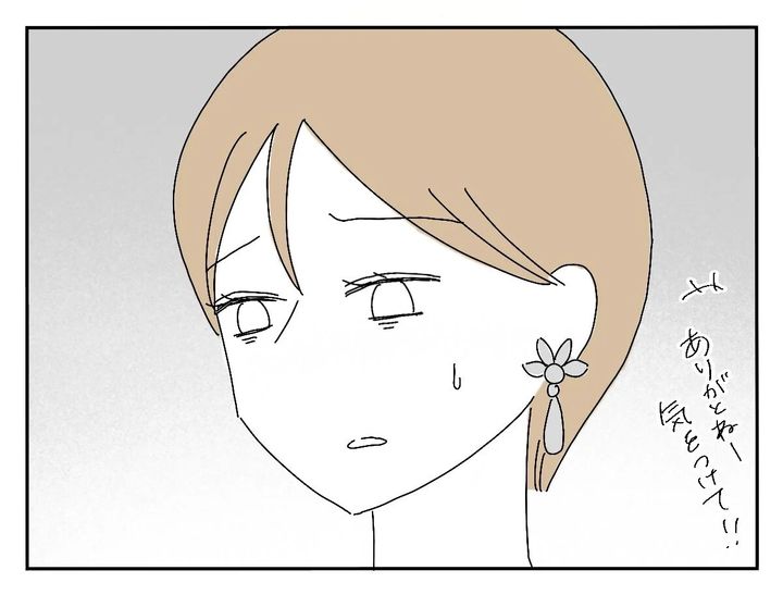 新郎の友人・花田さんの言動に疲弊する新婦。形式上、式に来てくれたお礼は言いますが、きっと「もう二度と関わりたくない」と思っているでしょう。