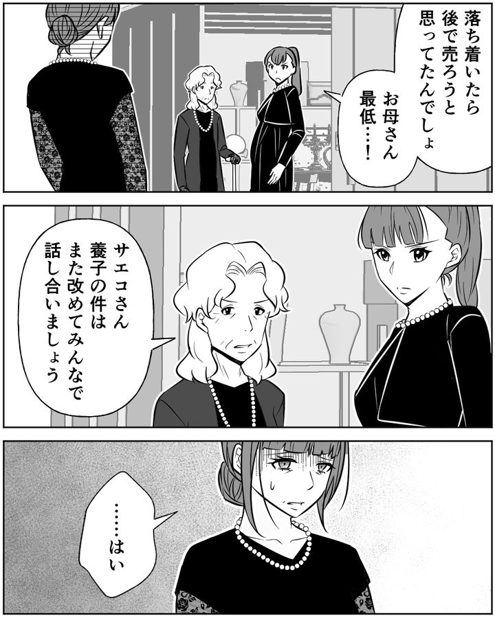 実の娘・ナギサから指摘を受け、お金のことばかりで子どものことを見ていなかった母親と同じことをしていたと気がついた義姉。反省した義姉はエミから義母の遺品について聞かれ、素直にありかを教えるのだった。
