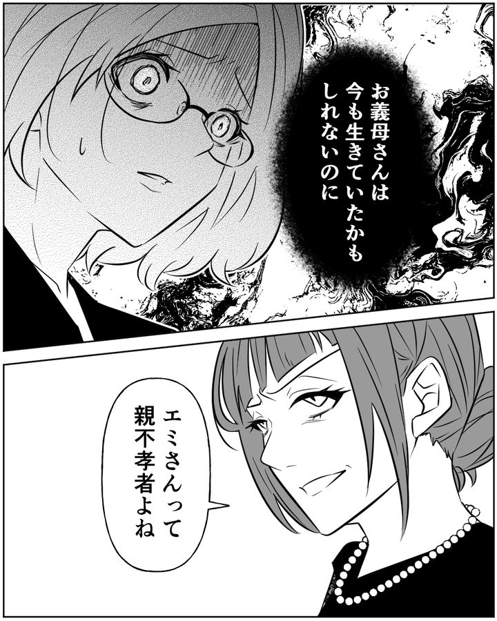 亡くなった母の法要の場で、義姉が本性を現した。義姉は嫁の自分よりも、実の娘・エミを可愛がる義母を疎ましく感じていた。義母の遺品だけでは満足できない義姉は叔母に取り入り、養子縁組を企んでいて…。