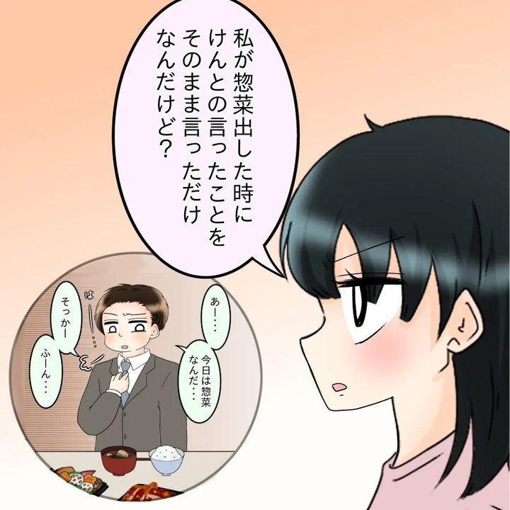 そんな中、モカが料理の当番制を提案。半ば逆ギレで同意するも、初回のハンバーグ作りは見事に失敗。その後、担当日には惣菜やレトルトばかり出すけんとだが、モカが同じように市販品を出すと不満げな態度を見せる。そしてある時、けんとがデパ地下で弁当を買ってくると…。
