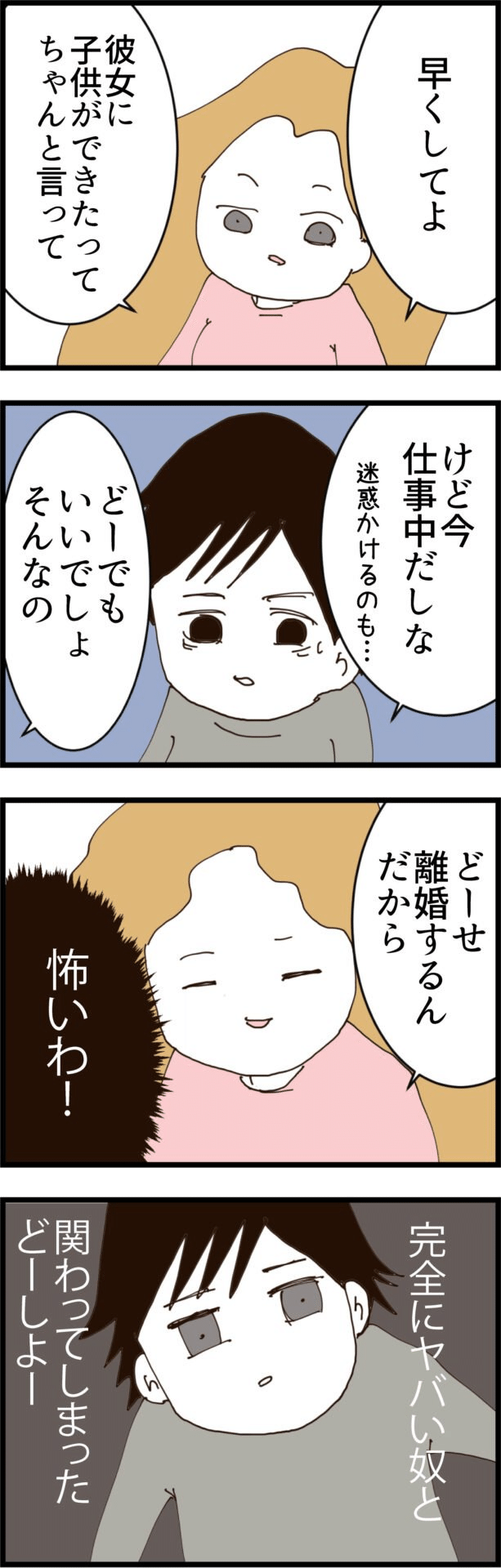 どうせ離婚するんだから迷惑とか関係ない。今すぐ妻に子どもができたと電話をして、と催促する後輩。
