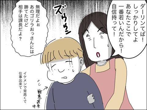 20代夫と子連れ再婚したドレミ。彼女の家で開催されたBBQで、歳下夫はママ友の歳上夫に対抗心を燃やし、美人ママに気に入られようとします。歳上夫に若さマウントを取っていた最中に現れたのは美人ママの夫。なんと彼の上司だったのです。