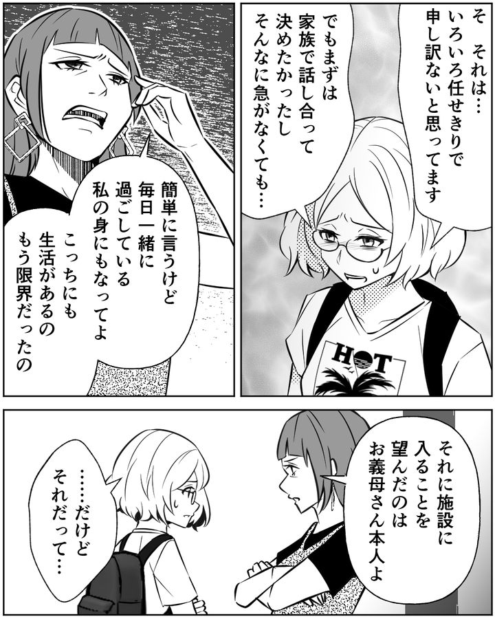相談なく母を施設に入れたことを義姉に問い詰めると、義姉は当然のように「毎日面倒見ているのは自分たち」「義母が施設に入ることを望んだ」と言うのです。