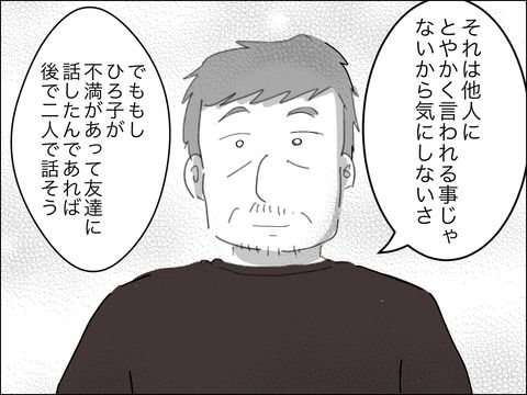 若さが自慢のママ友の夫。しかしBBQに参加したひろ子の夫は50代でイケオジ。彼は子どもたちにも優しく、ママ友の息子も彼に懐きます。おじさんとバカにしていた歳上に見せ場を奪われ嫉妬した歳下夫は息子を強引にその場から連れ去ろうとします。