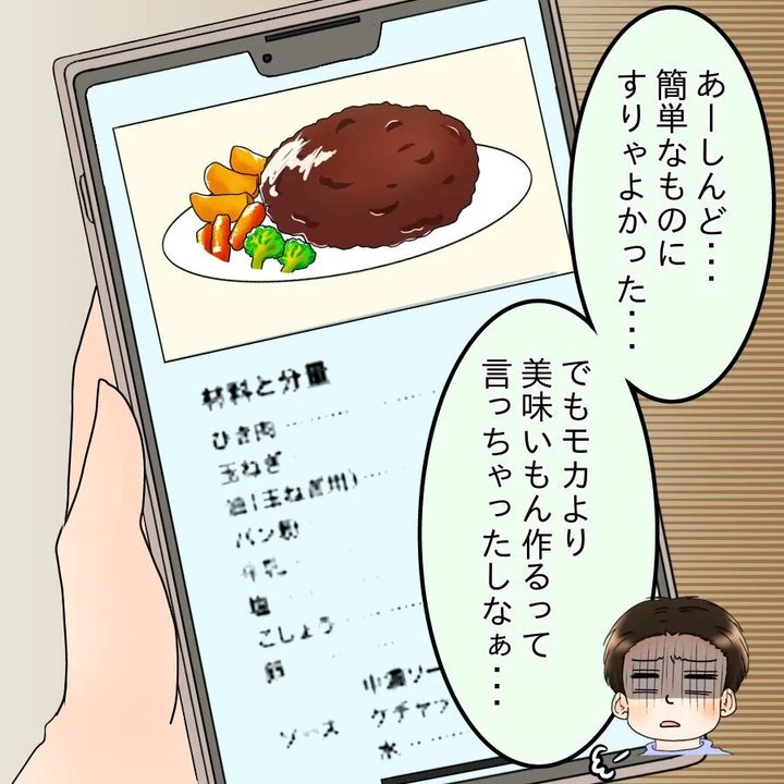仕方なく夕飯づくりにトライしますが、なぜかシャバッシャバなハンバーグの種…。このピンチ、けんたはどう切り抜けるのでしょうか。
