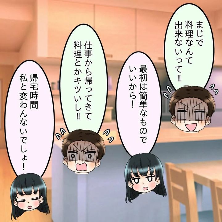妻から説得され、「もう!やればいいんでしょ!」と半ば投げやりに料理の当番制を受け入れたけんと。