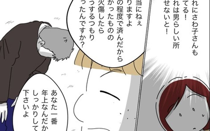 若い夫とイチャイチャしてばかりのママ友。自宅で開いたBBQでも焼くのは友だちの夫に任せきり。我が子のことも放置状態。すると子どもがコンロに触ってヤケドしてしまいました。友だちの夫は謝罪しましたが、ママ友の歳下夫は彼に責任を押し付けて責めます。それを見ていて怒ったのは歳下夫お気に入りの美人ママでした。