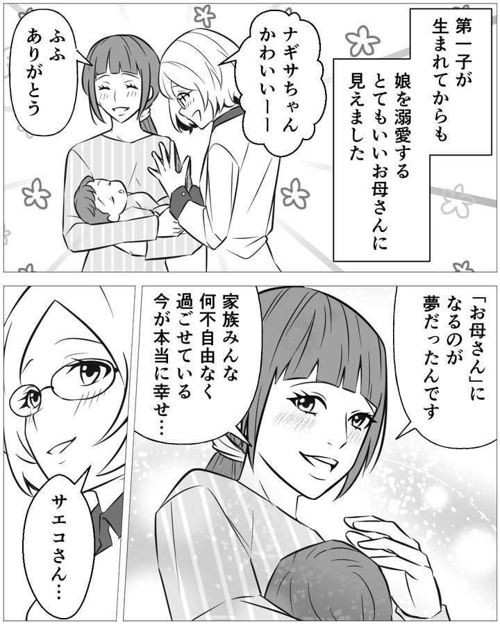 義姉の第一印象は、穏やかで家庭的な人でした。第一子であるナギサちゃんを出産して、溺愛する姿は良き母そのもの。私との関係も良好だったと思います。