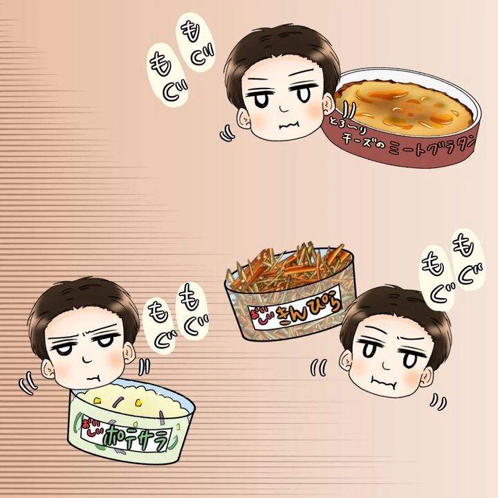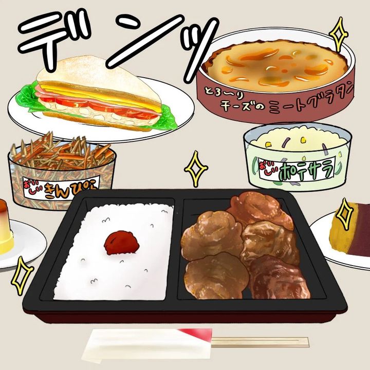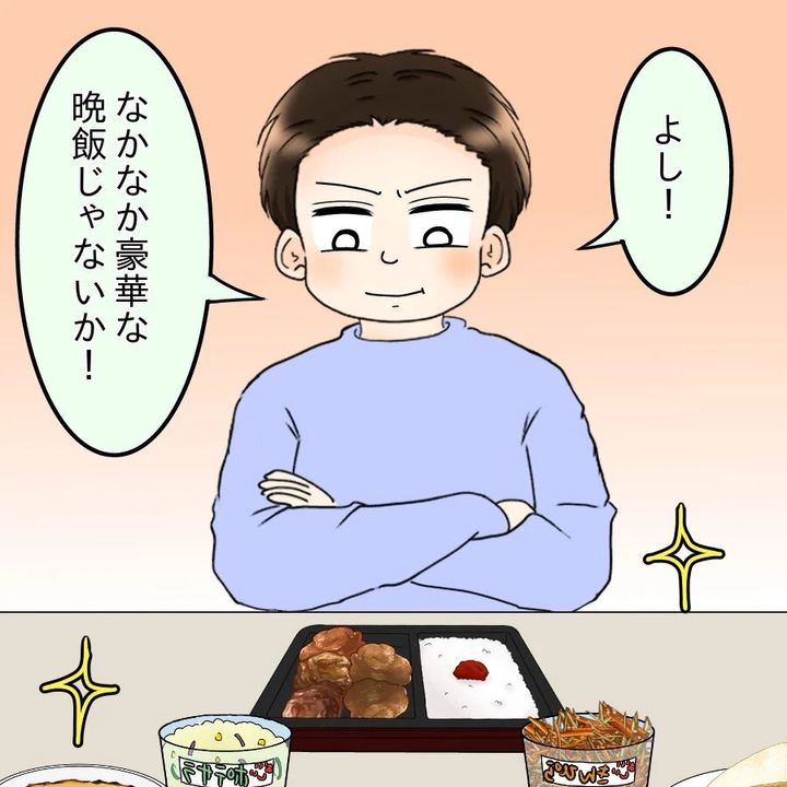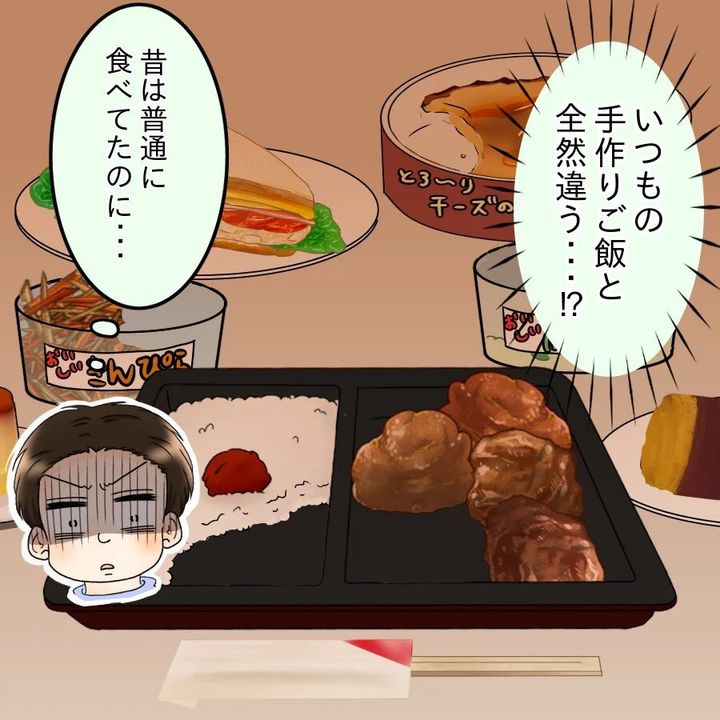 結局、コンビニで好きなだけ晩御飯を買ってきたけんとは、久しぶりにコンビニ弁当を食べることになったのです…が、不味くはないのになぜかしっくりこない様子。