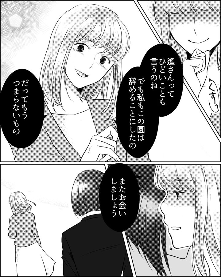 息子一家に敷地内同居を提案した義母は、断られたことを嫁の遙のせいだと思っている。そんな中、息子の幼稚園で遙はデマを流され周りから好奇の目に晒されることに。しかもそれが仲良しのママ友と義母が結託して仕組んだものだと発覚。すべてを知った夫は義母に別れを告げるのだった。脅されてデマ騒動に加担させられていたママ友が離婚し再出発した後、義母が幼稚園で遙を大声で非難し騒ぎになる。するとある人物が現れ…。