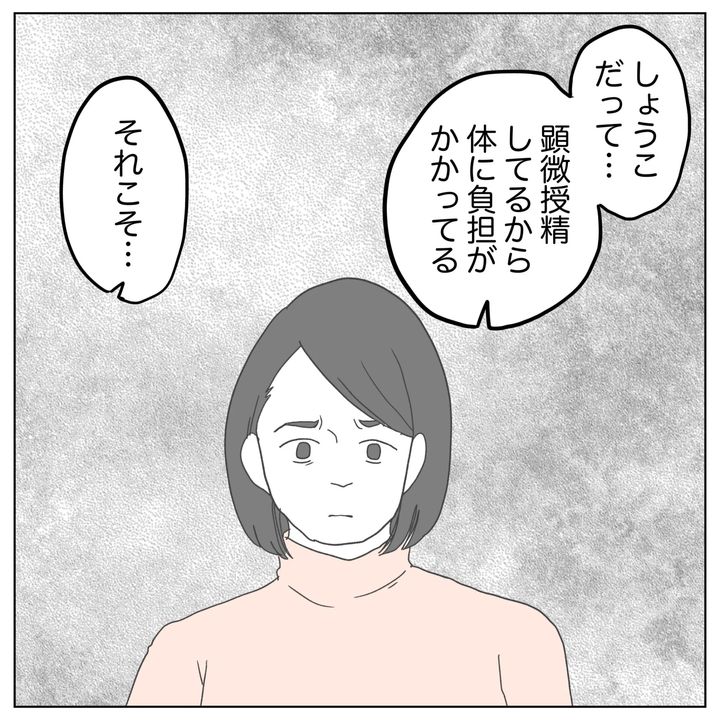 妊活するも妊娠できずにいた夫婦は、検査で夫の精巣が十分に機能していないことから不妊になっていることを知る。そこでtese(精巣内精子採取術)という治療で精子を採取するが、夫には体毛が抜けたり情緒不安定になるなど副作用が強く出てしまう。できた胚盤胞の移植を試みるが5回すべて陰性。医師から男性不妊治療に特化した病院を紹介されるが夫は副作用を思い出し、やりたくないと妻に訴えるのだった。
