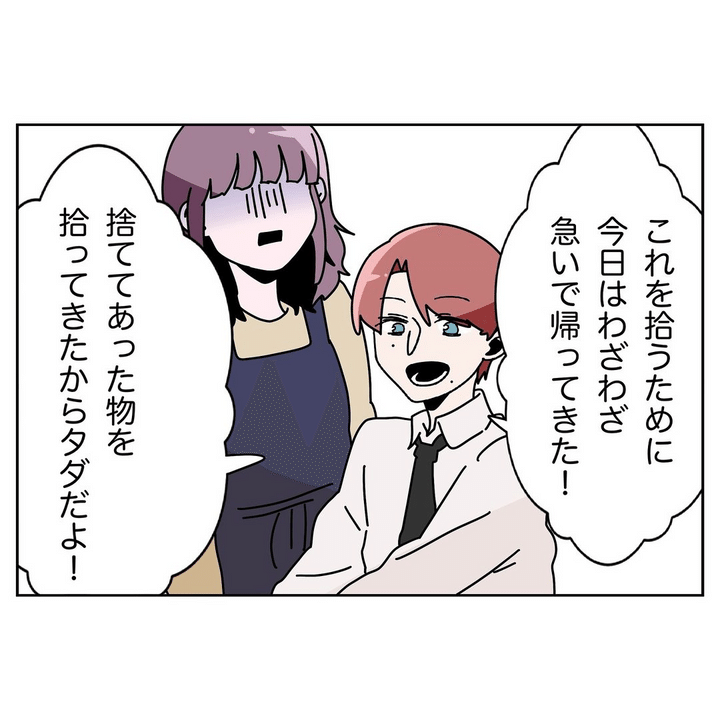 夫は「夫婦は対等であるべき」と、妊娠中でも生活費は折半、収入が少ない方が家事をするのが当然だと考えています。「夕飯は作る」と宣言するも初日で挫折し、毎日コンビニ弁当に。妻が家計を心配して「私が作る」と言えば不機嫌になり、「俺の収入で困ることはない」と反論します。生活費の折半にこだわる一方で、育児の協力を求められると、お腹の赤ちゃんに向かって「ママはパパに全部押しつける」と妻を悪者扱い。後日、夫は上司に夫婦喧嘩の話をすると、「安くて妻が喜ぶプレゼントを渡したら?」とアドバイスされます。それを聞いた夫は、何かを思いついたようで…。