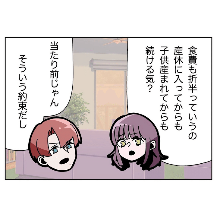 妻が「家計のため」と訴えているにもかかわらず、夫は「自分の収入なら問題ない」と反論します。さらに夫は、夫婦は対等であるべきだという理想のもと、妊娠や出産後であっても生活費はこれまで通り折半すべきだと考えているようです。