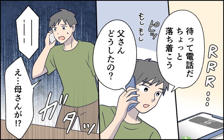言い合いになりそうになったとき、義実家から電話があって…。お義母さんが事故にあったそうです。夫の慌てた様子からして、ひょっとして深刻そう?