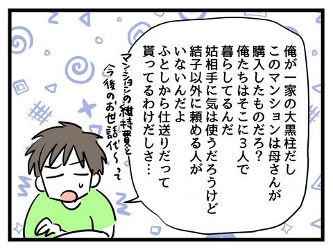「自分は家計の大黒柱だから休めない」「マンションは義母の名義だ」「弟から仕送りももらっている」「だから休めるのは嫁だけだ」