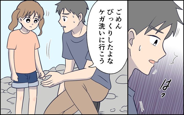 夫の「危ない!」という声で振り返ると、娘が川のそばで転びそうになっていました。夫が駆けつけてくれたので間一髪のところでセーフ。娘にケガはないようだし、よかったと安心しました。