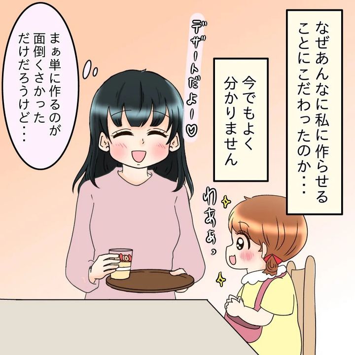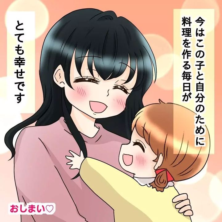 娘との幸せな生活を手に入れたモカ。「飯飯」うるさいけんとと別れたことで、大好きだった料理が再び「楽しい」と思えるようになったようです。