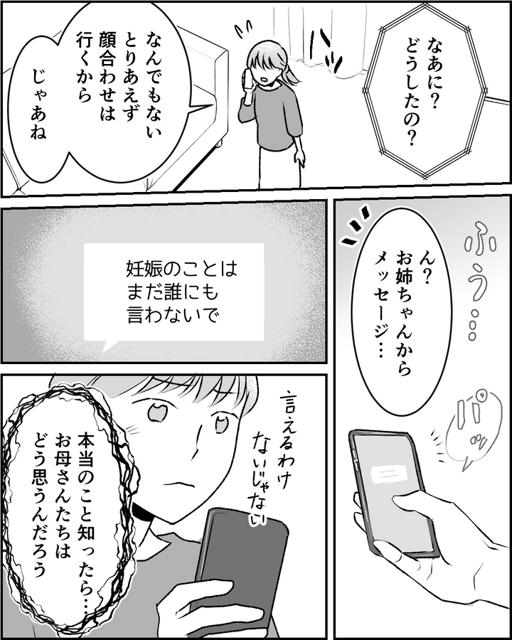 両家のあいさつの場へ向かう数日前。姉から「妊娠のことは誰にも言わないで」と連絡がありました。