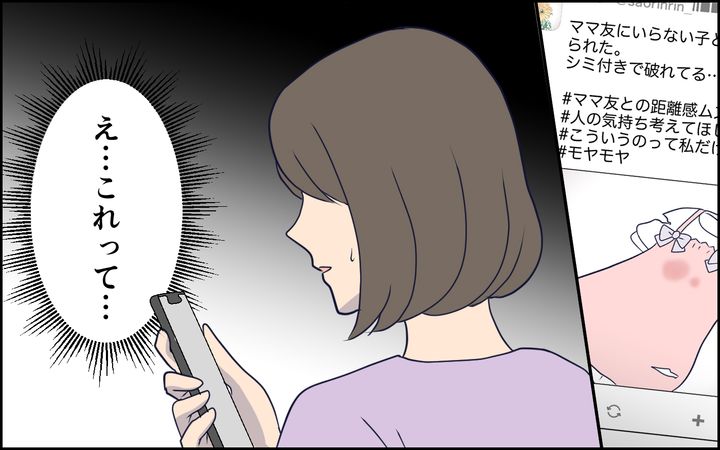 ママ友からもらったお下がりの子ども服をわざと汚して「押し付けられた」ことにしてみました。それだけだとちょっと弱いから、夫から怒られてケガをしたように話を盛ってみたところ…。