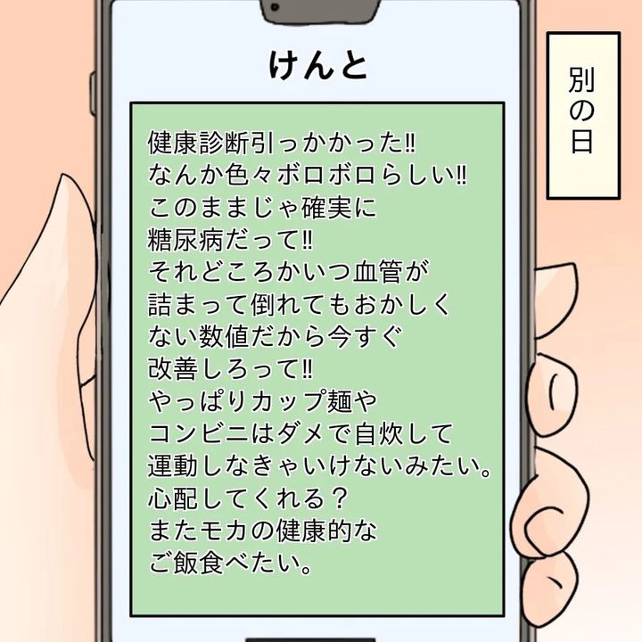 以前のような手料理を作ってほしいと何度もおねだりするが、そのたびに撃沈。それどころか、口を開けば「飯飯」ばかりのけんとに嫌気がさし、モカは離婚を切り出す。だが、けんとは「脅しだろう」と本気にしていなかった。