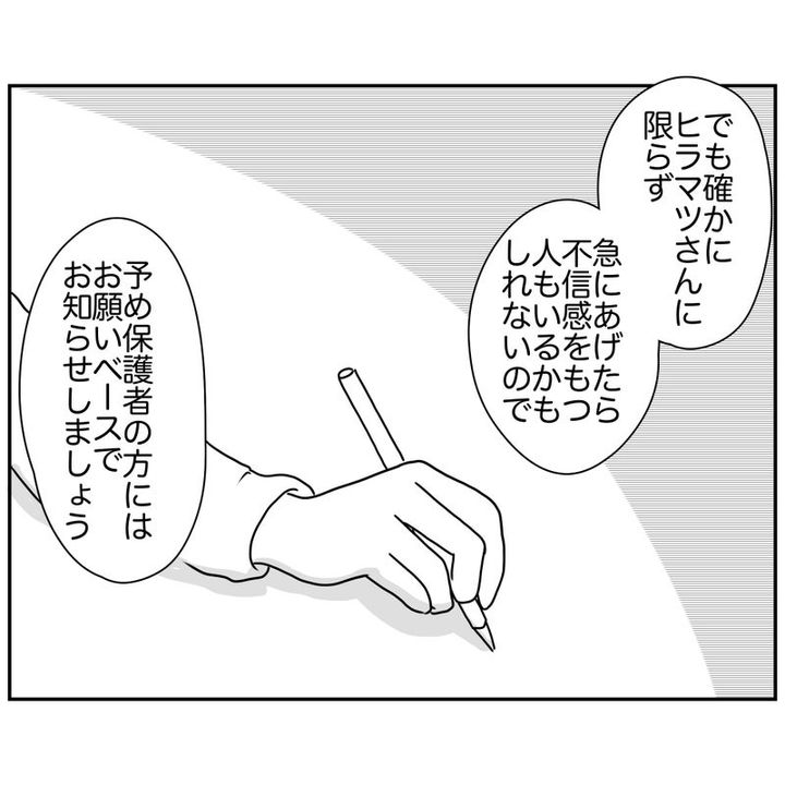 年長の娘を持つミカは、卒園式後のお別れ会役員に立候補。しかし会議では、リスク回避重視のヒラマツさんが「何かあったときに責任が取れない」と次々に企画を却下してしまう。