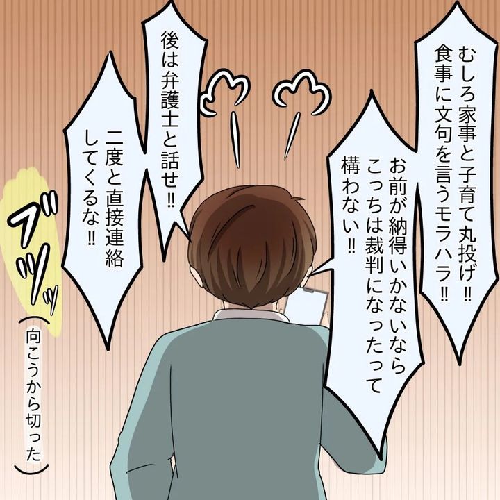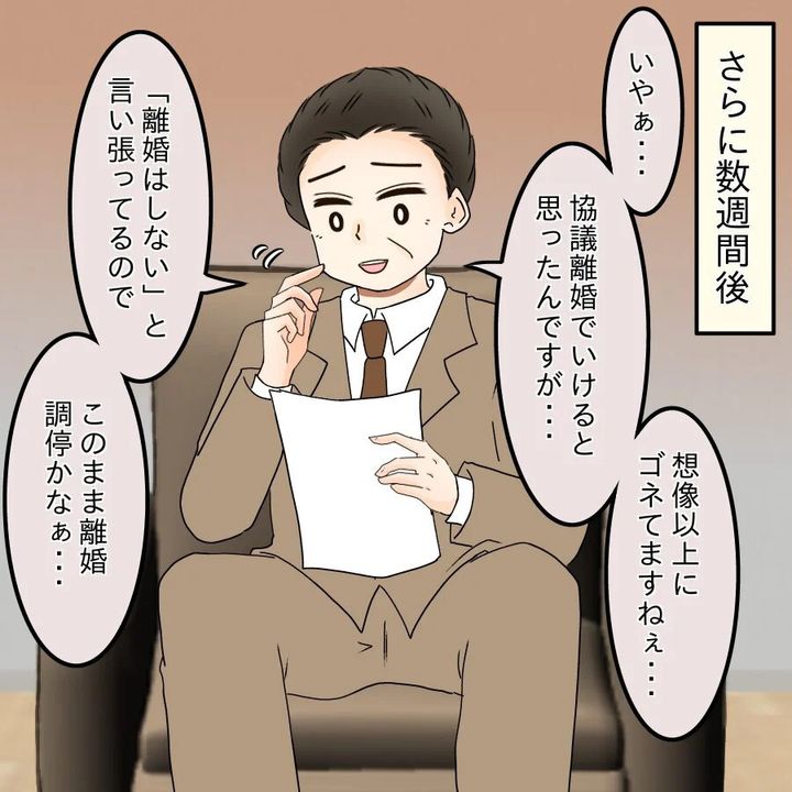 弁護士は根気強く離婚についての話を進めますが、けんとは「親に相談する」と言い、怒りながら帰って行ったそうで…。