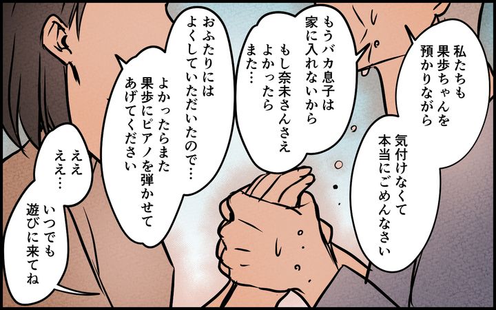 口実に利用されていたことだけではなく、そんな息子に育ててしまったこと、家族を傷つけてしまったことを誠心誠意謝ってくれました。義母は娘を預かっていながら何も気づけずにごめんなさいと、それこそ涙を流しながら…。