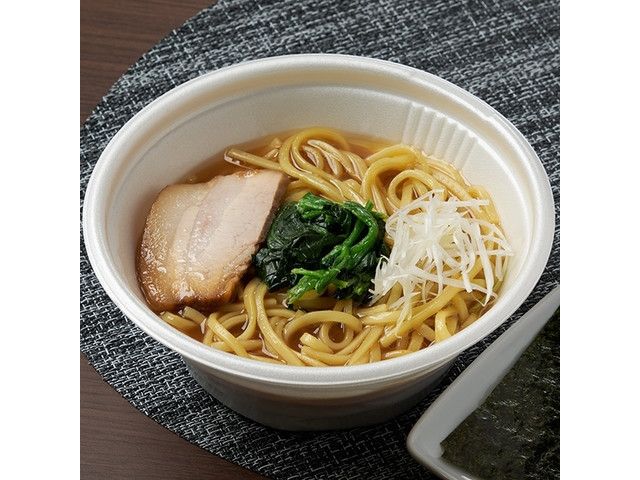 横浜市に本店を構える、家系ラーメンで有名な「寿々㐂家」監修の「家系ラーメン」です。豚がらの旨みをしっかりきかせたバランスのよい豚骨醤油スープとたっぷりの鶏油で満足感のある仕立てです。別添で焼のり付きです。