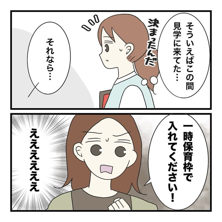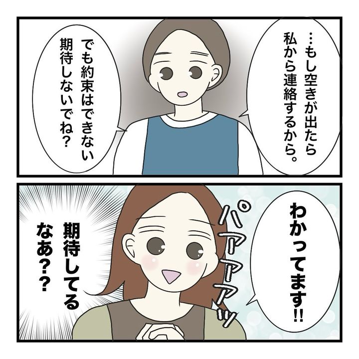 そこで最後は「約束できないから期待しないで」という園長先生の言葉に、ひーちゃんママは思いっきり期待した表情で園を後にするのでした。