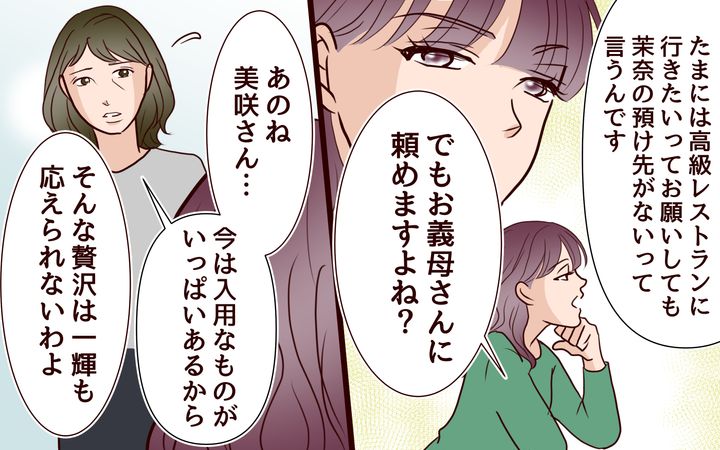 赤ちゃんはとてもかわいいけれど、おねだりの多さに閉口し始めました。しかもその言動は、息子が元嫁に贅沢をさせてきたから同じ権利を自分にもほしいという理由から来ているようで…。