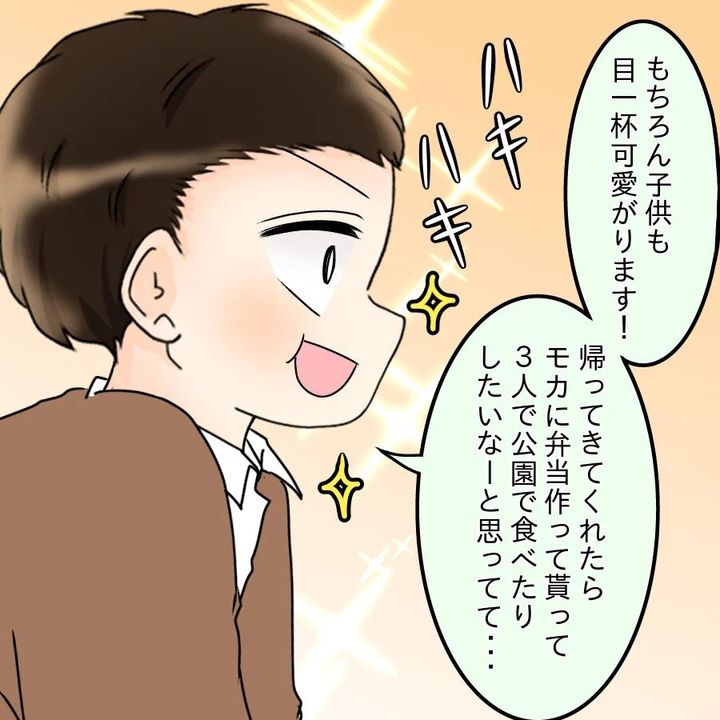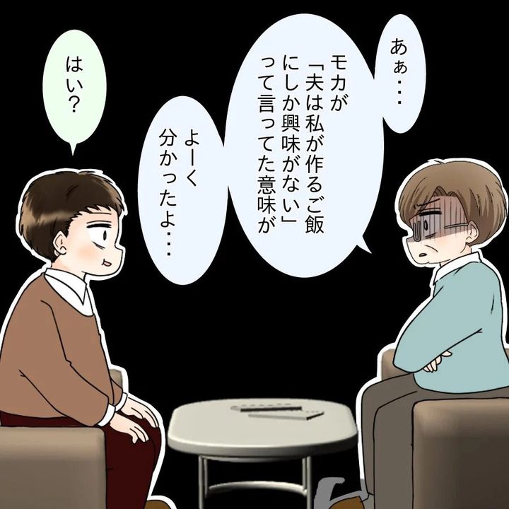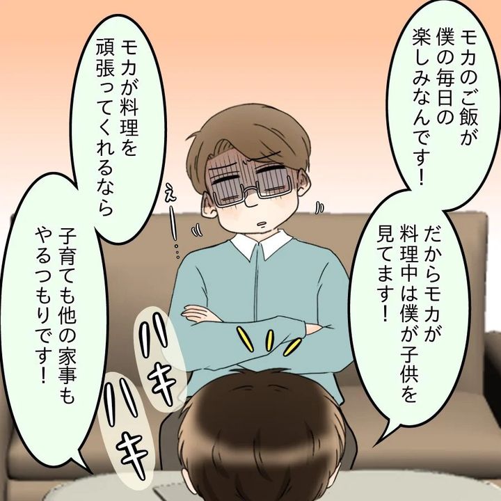 以前のような手料理を作ってほしいと何度もおねだりするが、そのたびに撃沈。それどころか、口を開けば「飯飯」ばかりのけんとにモカは離婚を切り出す。それでもけんとは「ただの脅しだろう」と反省せず、その姿にモカは里帰り出産、さらには離婚を決意するのだった。