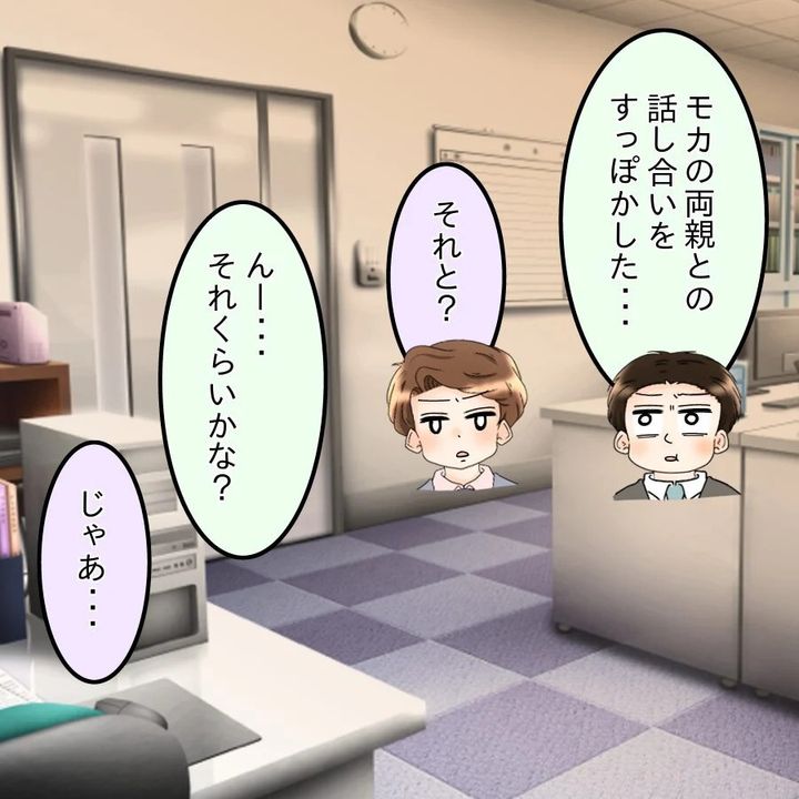 離婚を決意したモカは、両親にも相談して里帰り出産することに。それから数週間後、自由気ままな生活を送っていたけんとは、とっくに出産予定日が過ぎていることに気づく。慌ててモカに電話すると、財産分与や養育費など、具体的な離婚話をされてしまい…。