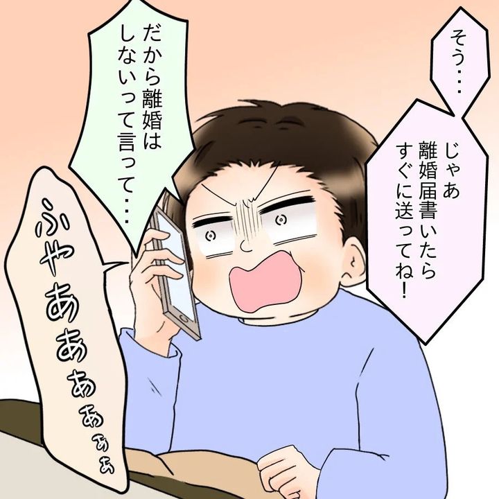 離婚に向けた具体的な話になると、急に焦りだすけんと。今までずっと「離婚」と言われていたのに、本当にただの脅しだと思っていたんですね。