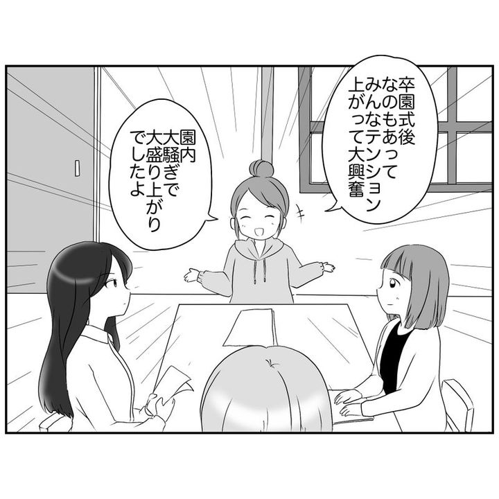 年長の娘をこども園に通わせている主人公・ミカは、卒園式後のお別れ会&謝恩会の役員に立候補。娘は「ママすごい」と大喜びで、ミカ自身も「先生と子どもたちの最後の楽しい時間を作りたい」とワクワクしていた。