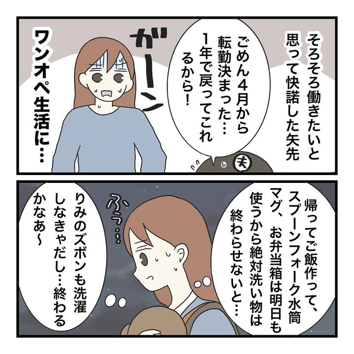 しかもまりなの家は実は、まりなの仕事復帰が決まった直後に夫の単身赴任が決まったためワンオペ生活!