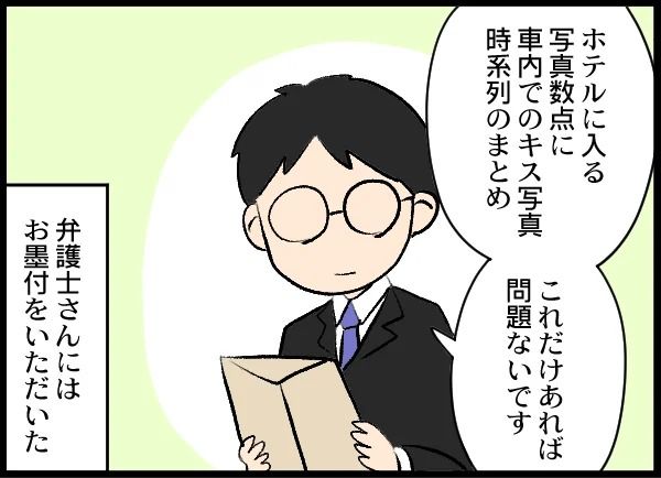 弁護士さんから「これだけの証拠があれば離婚できる」とのお墨付きを得て、妻はさらなる行動を開始します。裏切り行為の証拠と離婚届を夫の単身赴任先に置いて、戻るのでした。