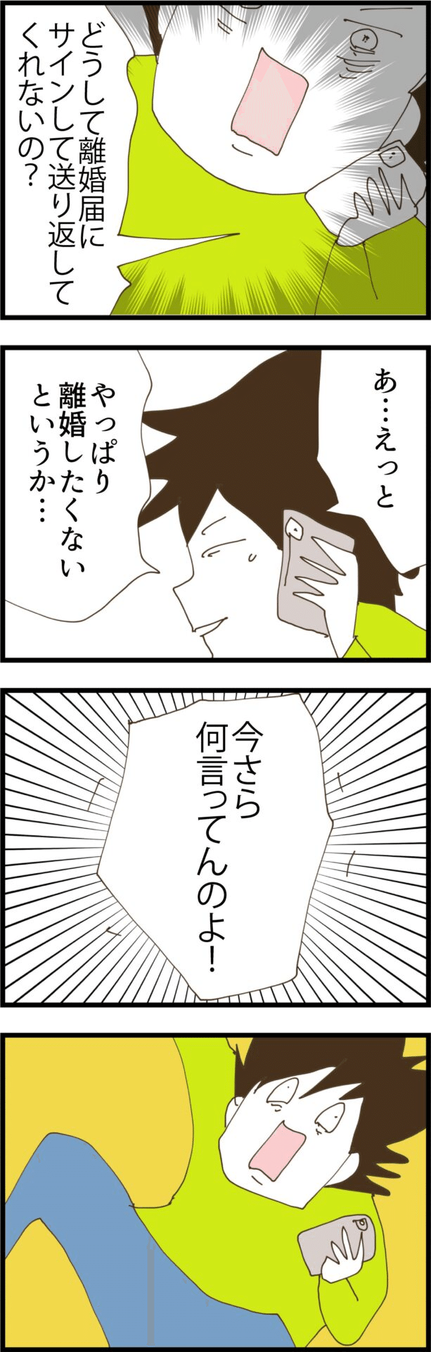 いつまで待ってもサインした離婚届が返送されず、痺れを切らした妻は夫に催促の電話をかけます。