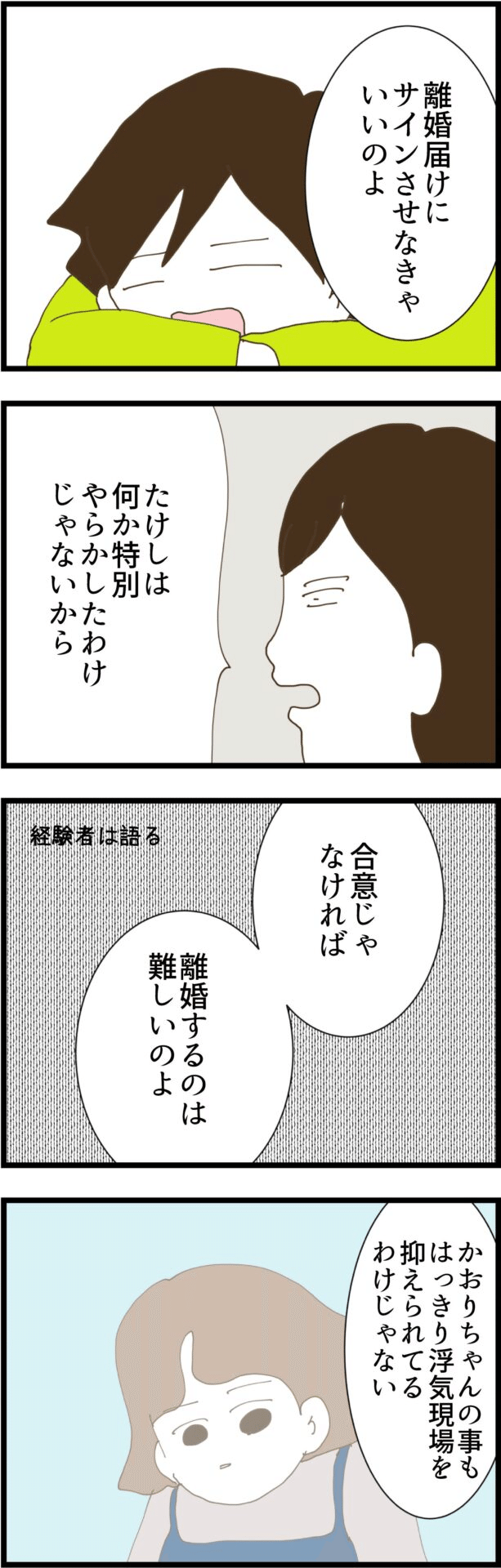 夫はかおりに少しばかりの好意はあったものの、特別裏切り行為をしたわけではないので、これ以上は追及できないのをいいことに、妻と離婚させず、引き続き義父の面倒を見てもらおうというのです。
