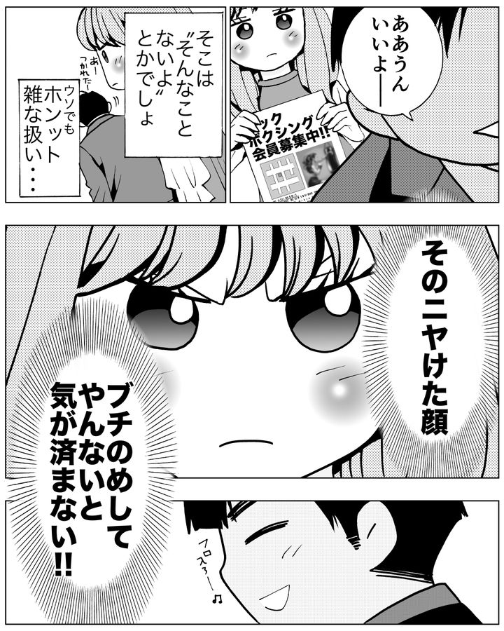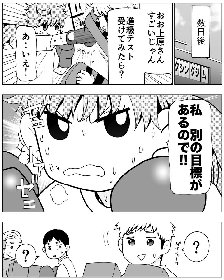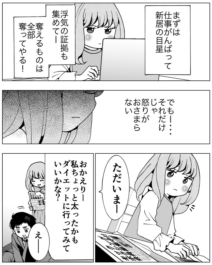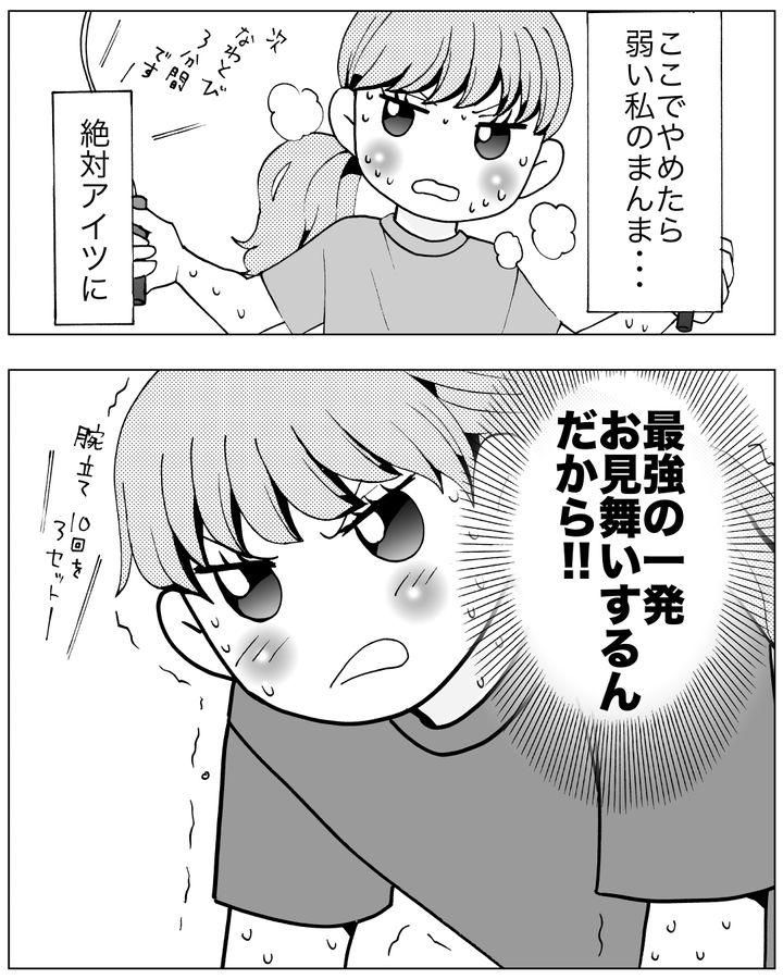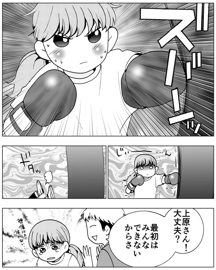 強くなりたい!あのニヤけた顔に一発お見舞いしてやりたいという思いからキックボクシングを始めることに。きつかったけれど、強くなるため!夫をブチのめすためだ!と思うと頑張れたのでした。