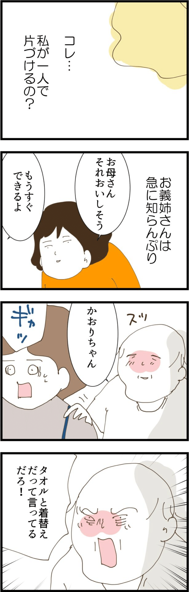 あとはよろしく! と丸投げされ、義姉は知らんぷり。義父には逆ギレされ、そのやりとりが絶対に聞こえているはずの義母も見て見ぬふり…。