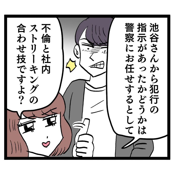 そんな中、池谷妻に協力を頼まれたルナは“裏切り現場”を押さえるも、捜査がバレてアンリに階段から突き落とされそうになる。だが、ルナが避けたことでアンリが落下。アンリは「すべての犯人はルナだ」と主張するが、事の真相は監視カメラに映っていた。事態を知った池谷は、アンリとの関係を全否定。だが、部長から不適切な関係について処分が下ると言われて…。