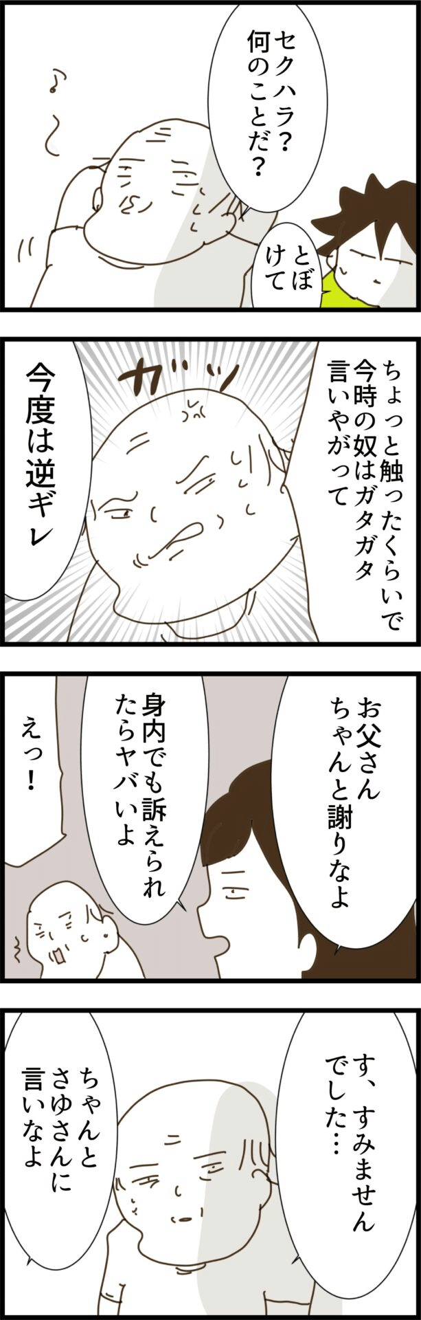 しかし、義姉の「謝らないと訴えられるよ」の一言を聞いた義父は、さすがに訴えられるのはマズイと思ったのか、ようやく素直に謝りました。