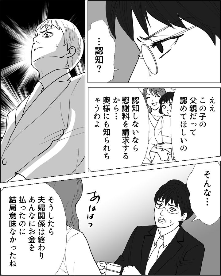 夫は同窓会で再開した元彼女・玲奈と関係をもってしまった。玲奈に脅されるまま関係を続け、妊娠がわかると出産しないよう懇願する。すべてのお金を払って、妊娠はなかったことにしようとしていたのだ。