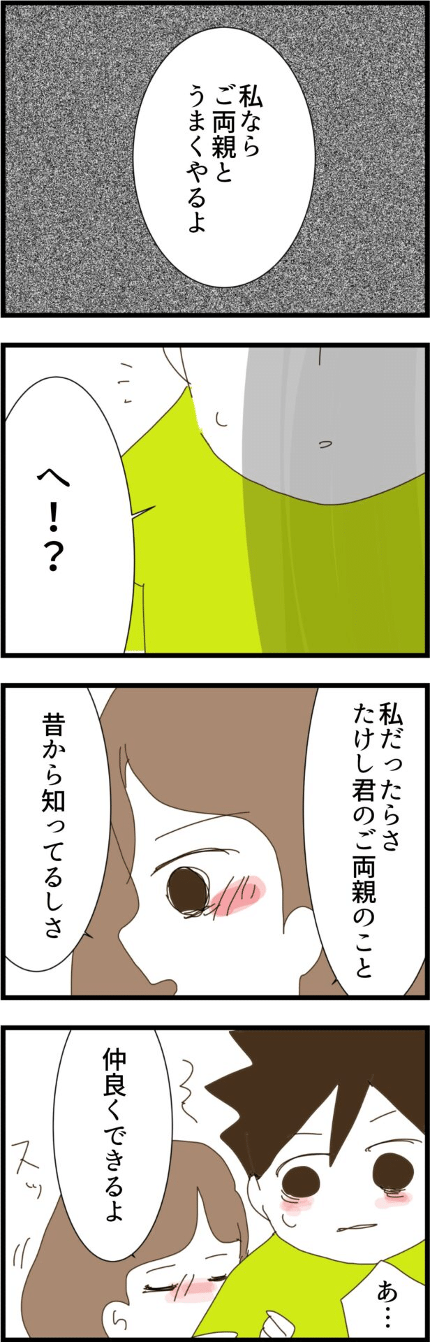 するとかおりは突然「私ならご両親とうまくやれる」と言って、夫に身を寄せるのでした。